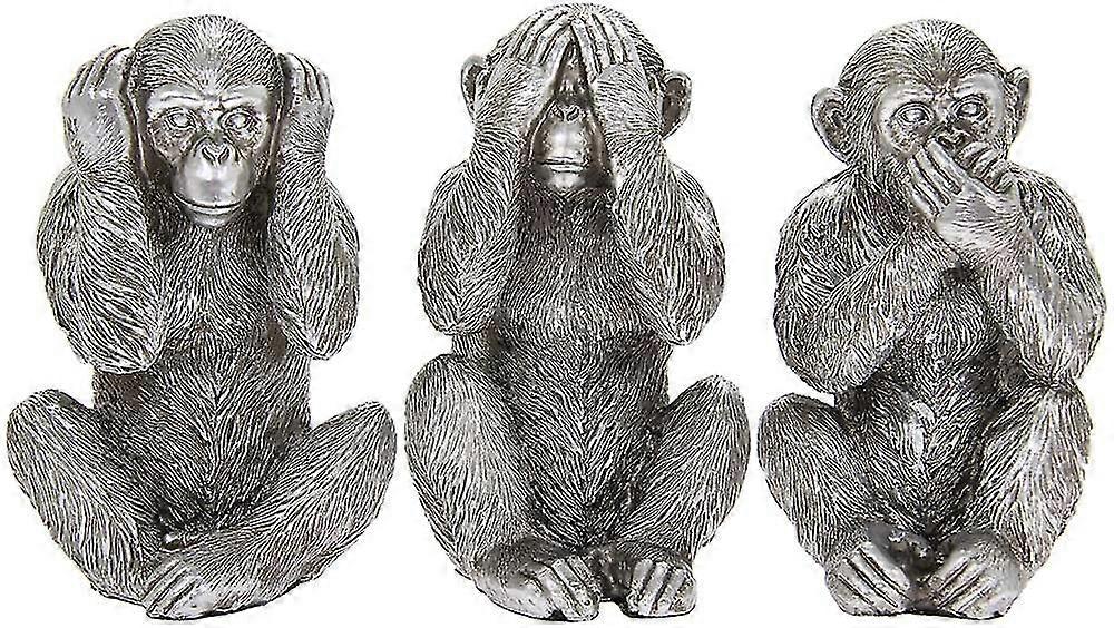 Wise Monkeys Ornaments In Antique Silver Finish Car Orangutan Creative Resin Ornament Decoration 3pcs