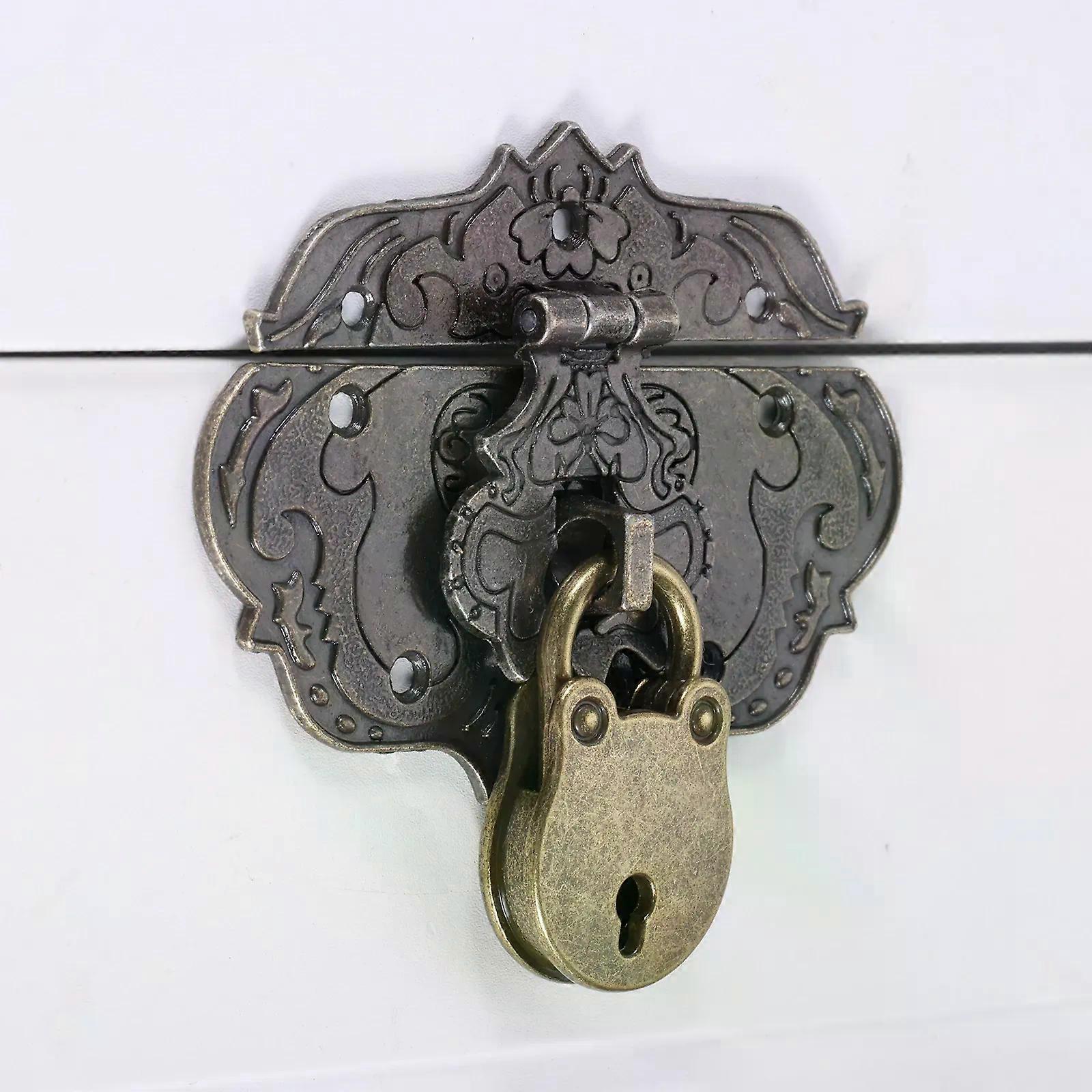 Antique Bronze Decorative Brass Hasp Clasp Latch and Padlock with Key and Screws for Jewelry Box Wooden Case Furniture Hardware