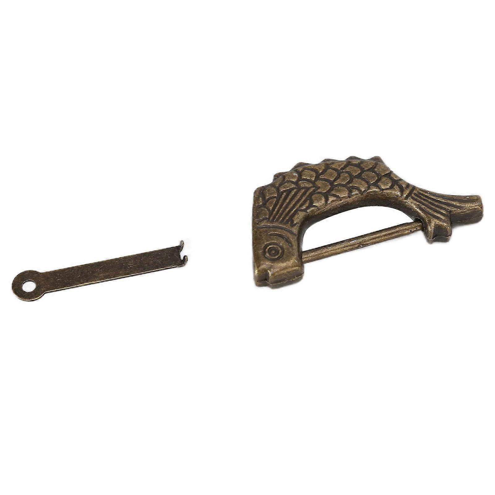 Antique Fish Shaped Retro Padlock OldFashioned Vintage Brass Lock 3.2cm Spacing for Jewelry Box(YMCAT)