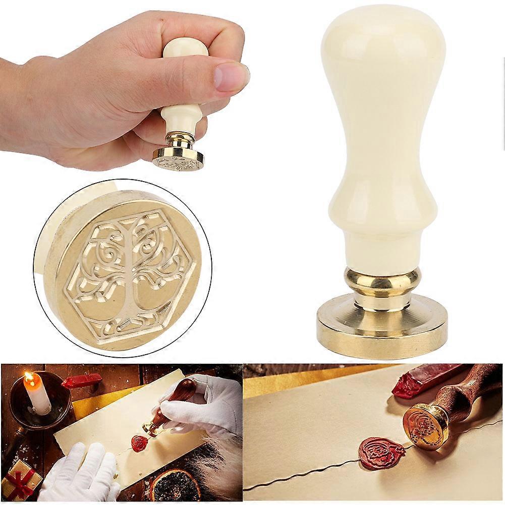 Antique Wax Seal Stamp Wooden Handle Envelope Invitation Letter Sealing Tool (White)