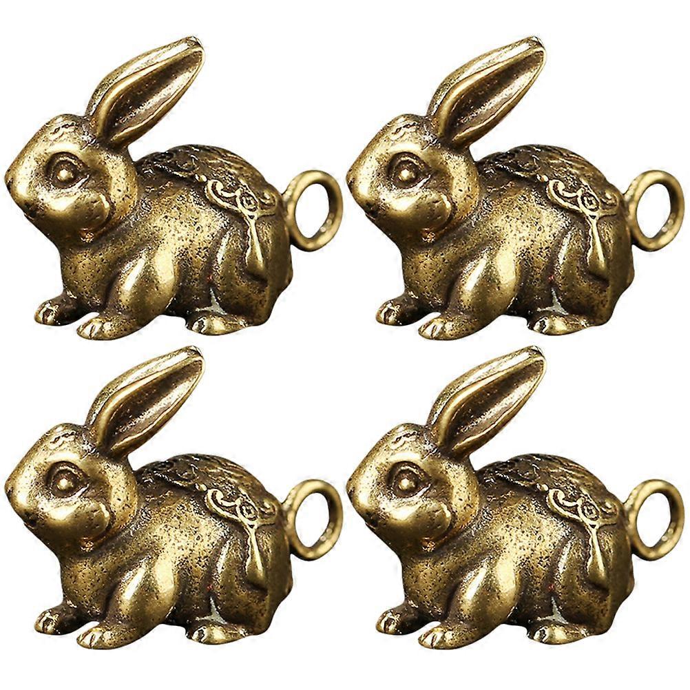 Antique Brass Rabbit Charms Keychain Vintage Year Rabbit Figurine Pendant for Holiday Decor & DIY Projects