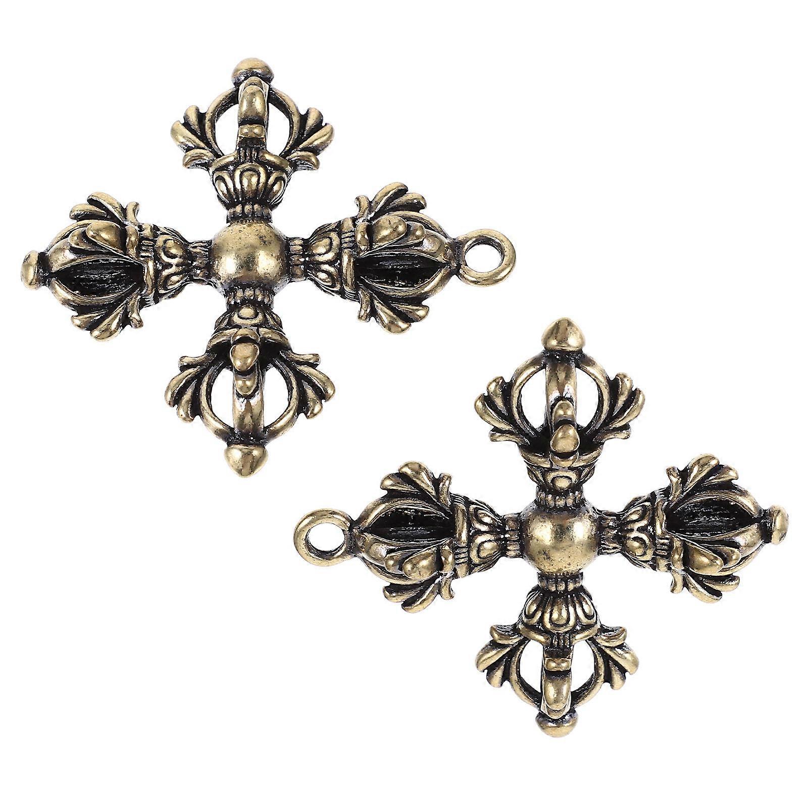 Antique Brass Vajra Pestle Pendant Charm for Decoration 4Pcs Keychain Hanging