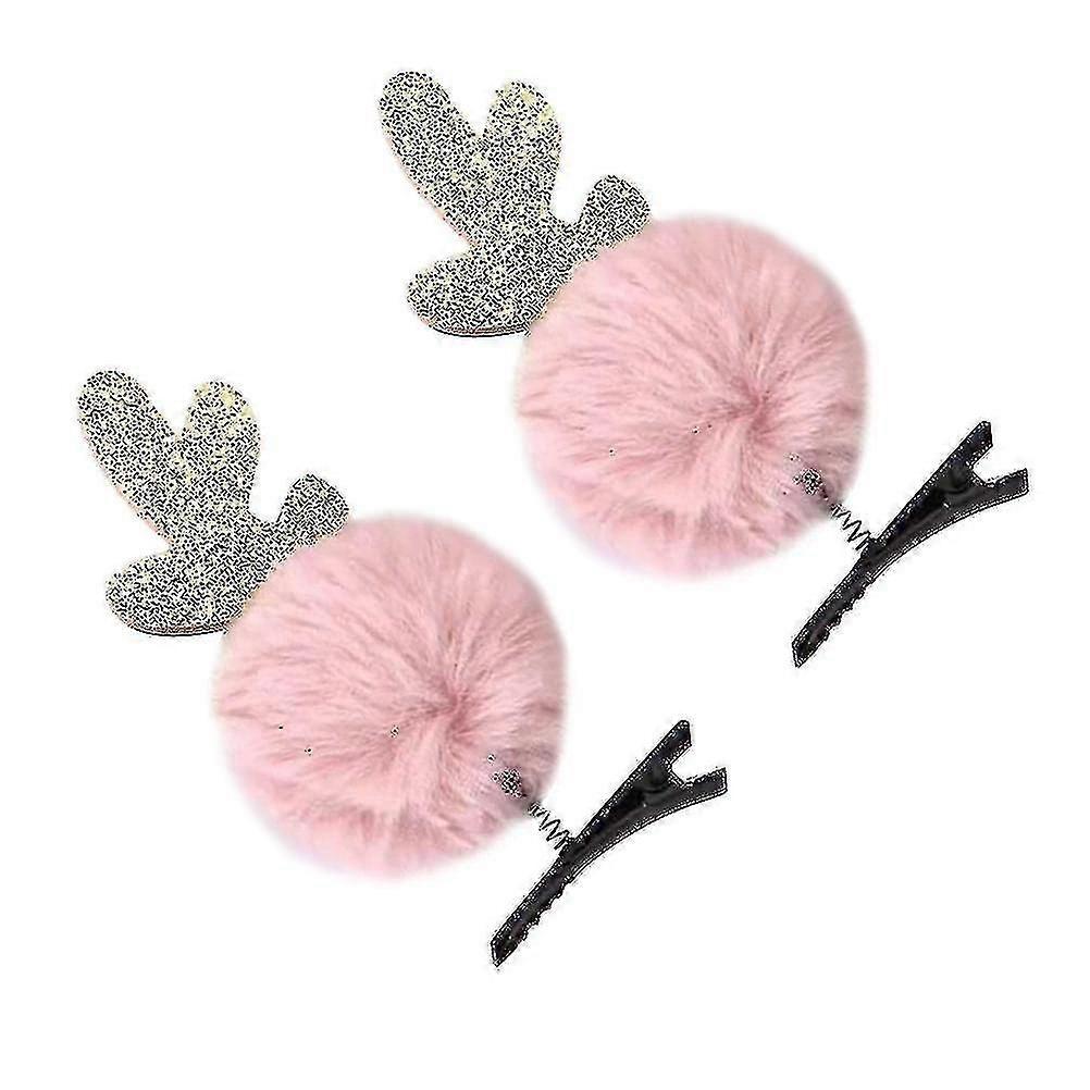 Antler hairpins, a pair, pom-pom design suitable for all seasons and adaptable to various hairstyles
