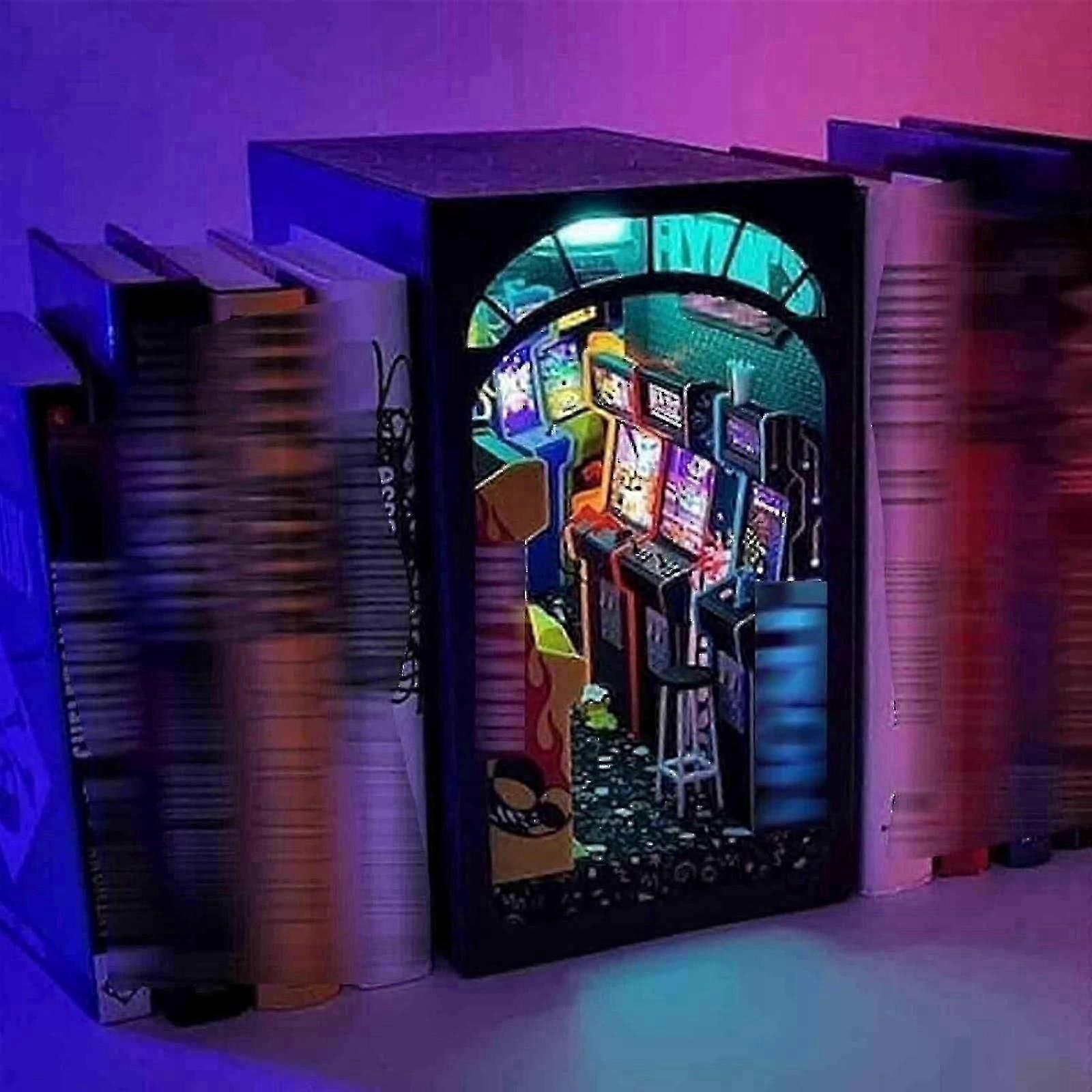 Arcade Themed Booknook, 3d Wooden Puzzle Booknook, Diy Book Nook Kit, 3d Wooden Puzzle Bookend Bookshelf Insert Decor With Led Light For Teens And Adu