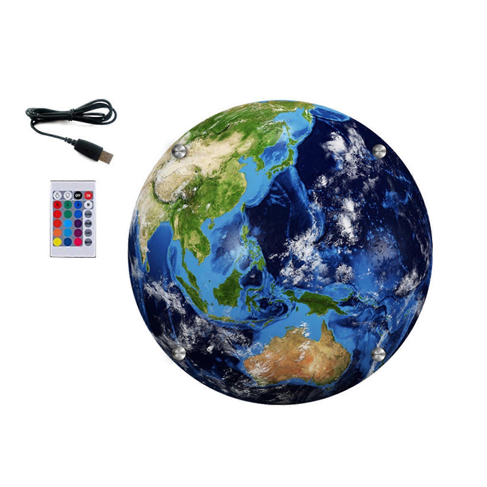 Earth Wall Lamp Remote Control Color Changing Dimmable Frameless Modern Living Room Bedside Nursery LED Decoration Light Birthday Gift QingHai