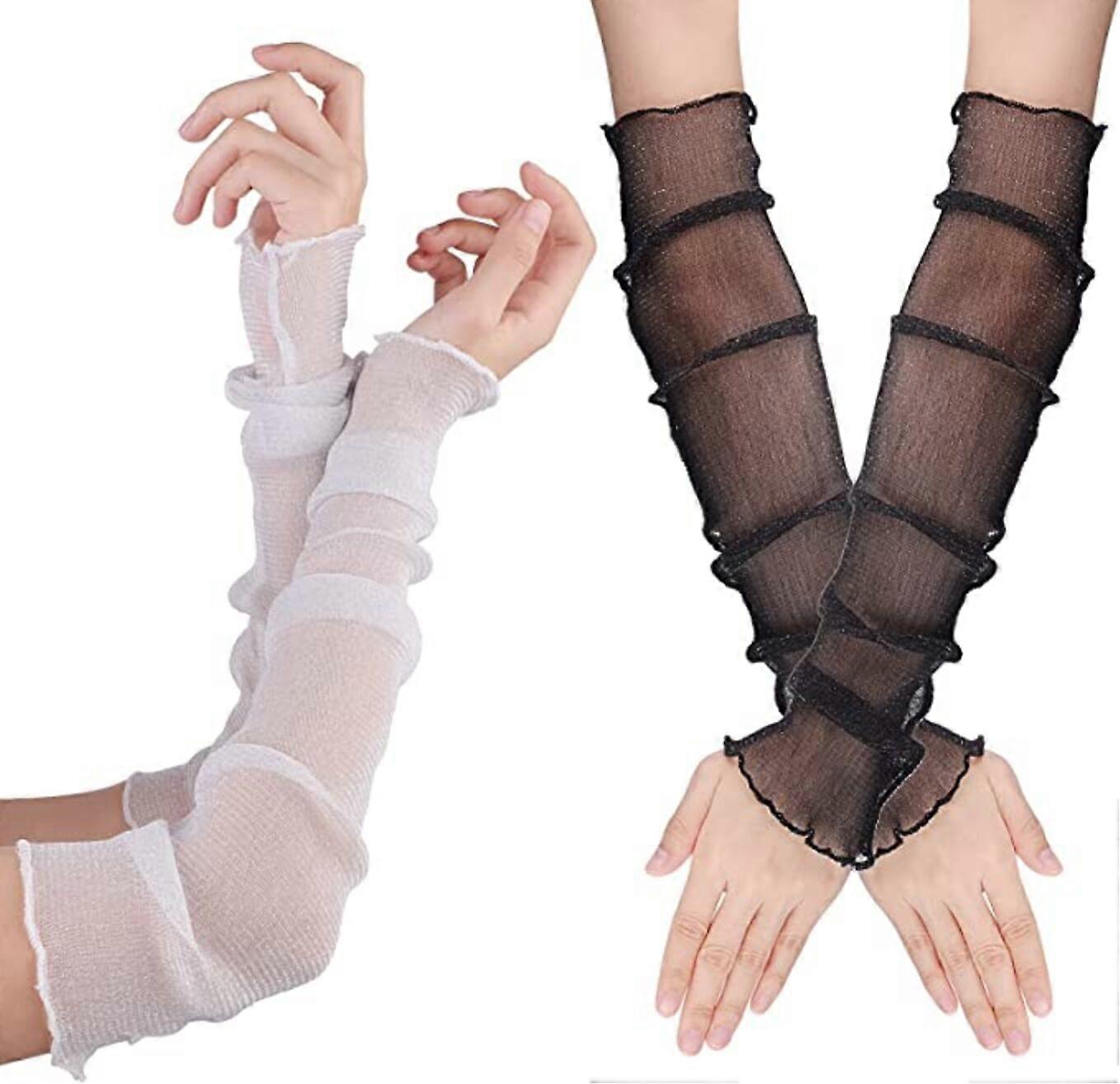 2 pairs of arm warmers women's cooling arm sleeves long ultra-thin fingerless