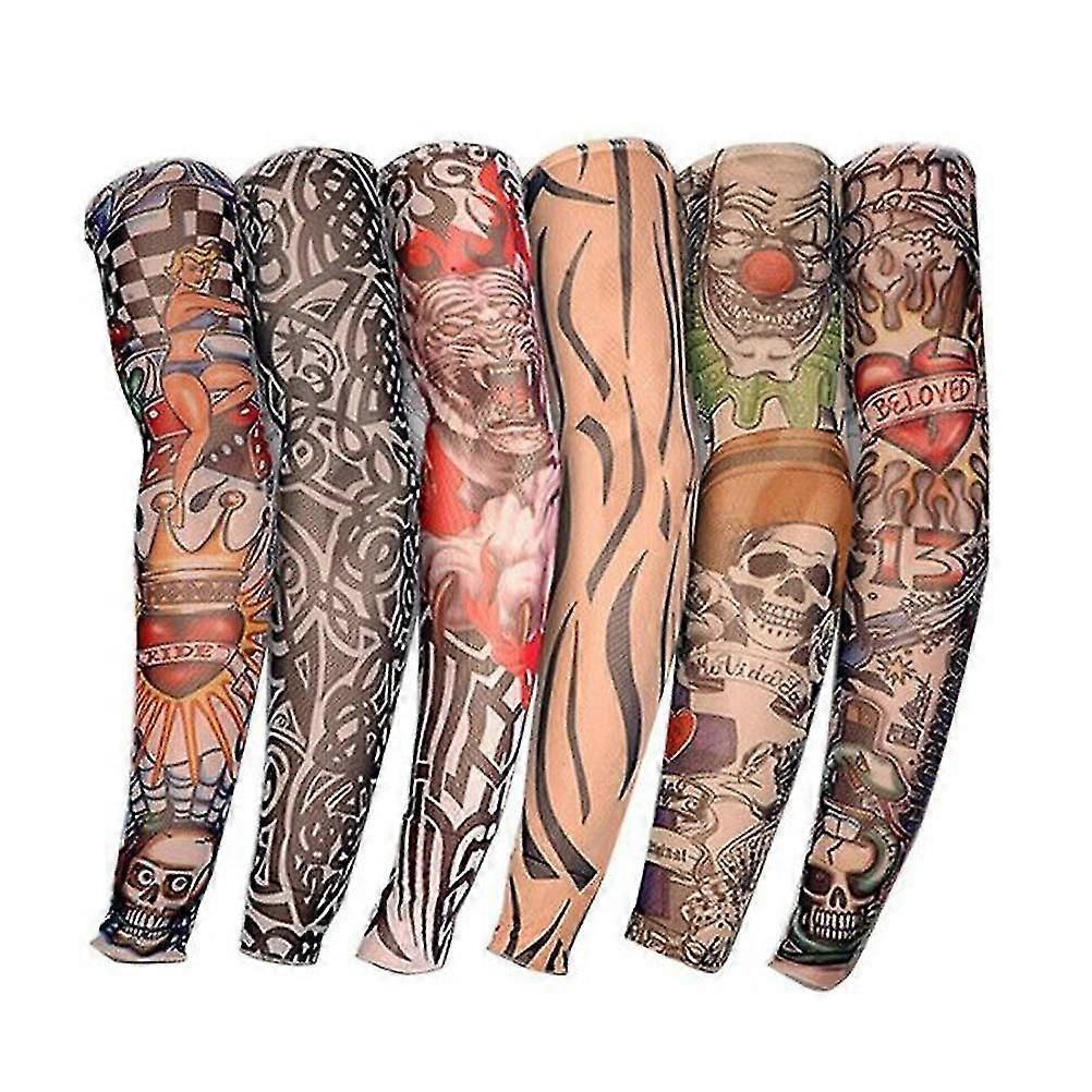 Arm Tattoo Sleeves,6 Pack Men Fake Temporary Tattoo Nylon Sleeve Arm Stockings Elastic Biker Sleevelet For Halloween