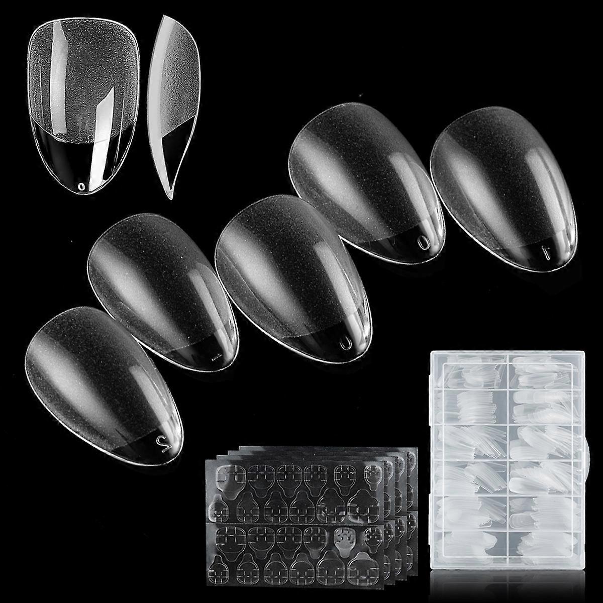 Almond Short Nail Tips, Full Cover Nail Tips, Pre-Shaped Semi-Matte Tips Nails Gelly Nail Tips-360 Pieces 12-Sizes, 4 Sheets Nail Glue