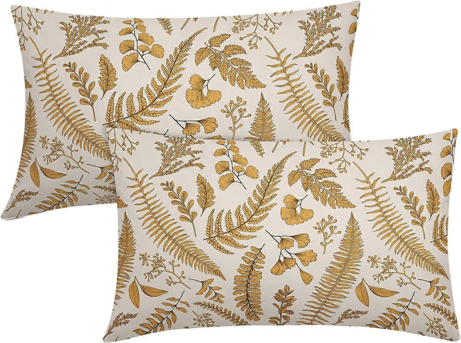 Yellow Leaf Plant Lumbar Pillow Covers 12X20 Inch Set of 2 Tropical Fern Herbs Botanical Leaves Floral Decorative Pillow Cases Vintage Cushion Case Fa