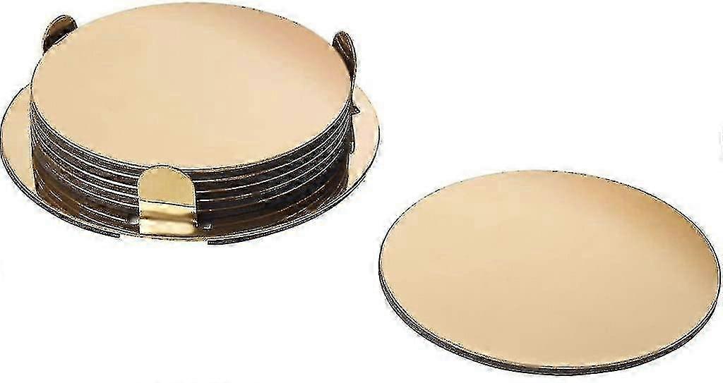 Ikea Glattis Coasters Set Of 6 Coasters With Holder Gold/brass 8.5 Cm Dia - chuan