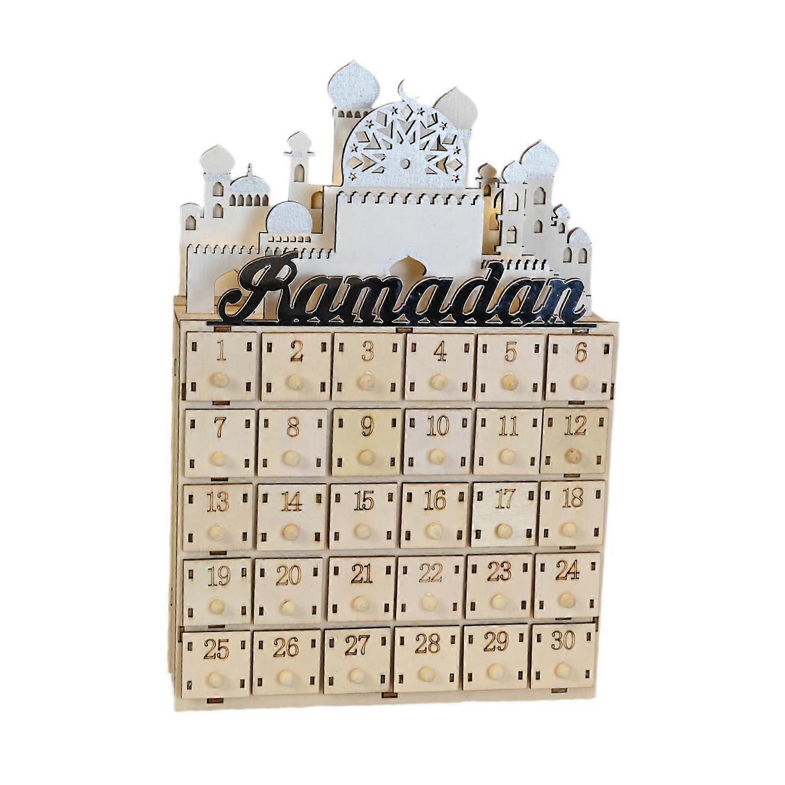 Muslim Ramadan Advent Calendar Wooden with 30 Drawers for Home Holiday Party