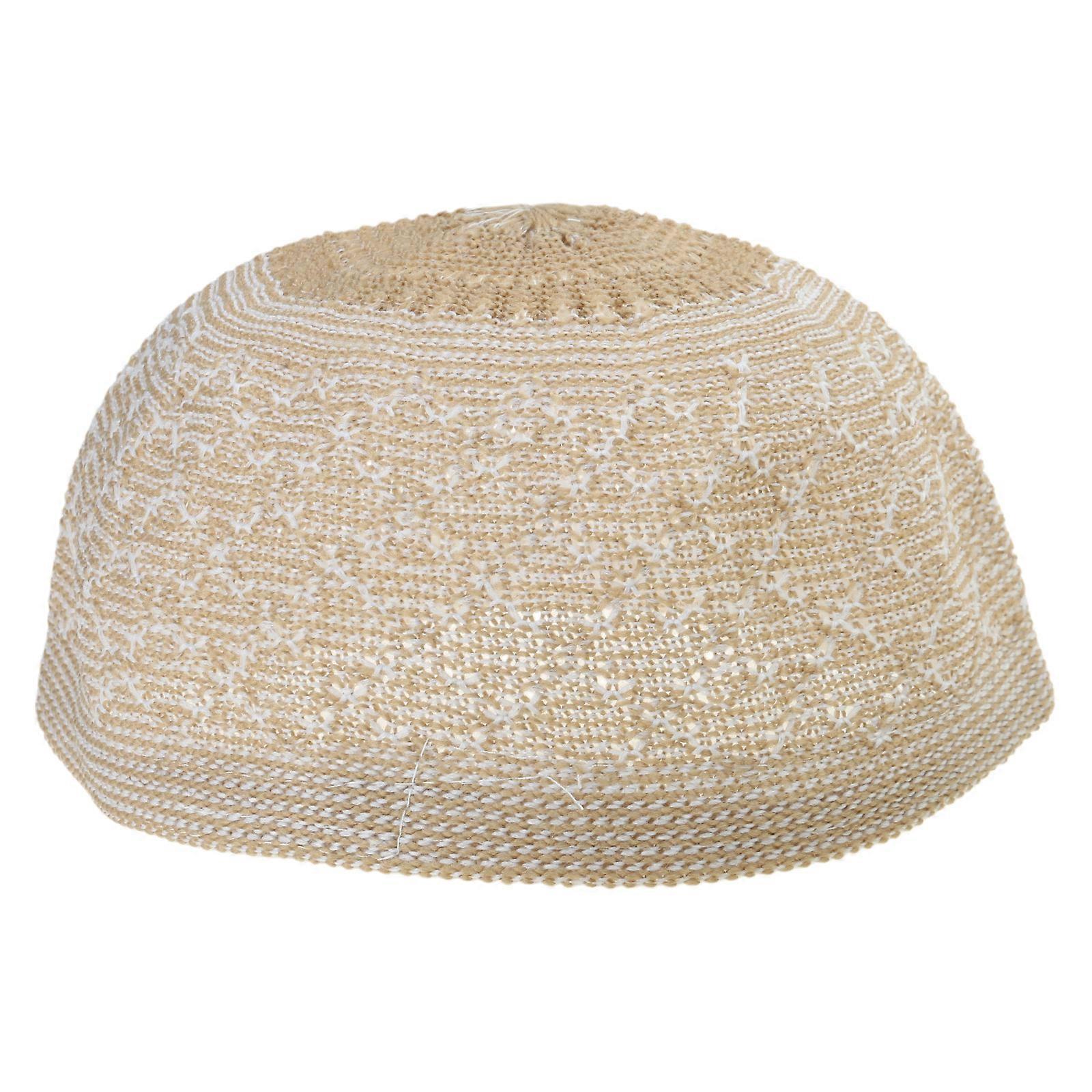 Ethnic Muslims Men Prayer Hat Embroidered Islamic Kufi Hat Comfortable Namaz Hat Traditional Islamic Headwear Beige