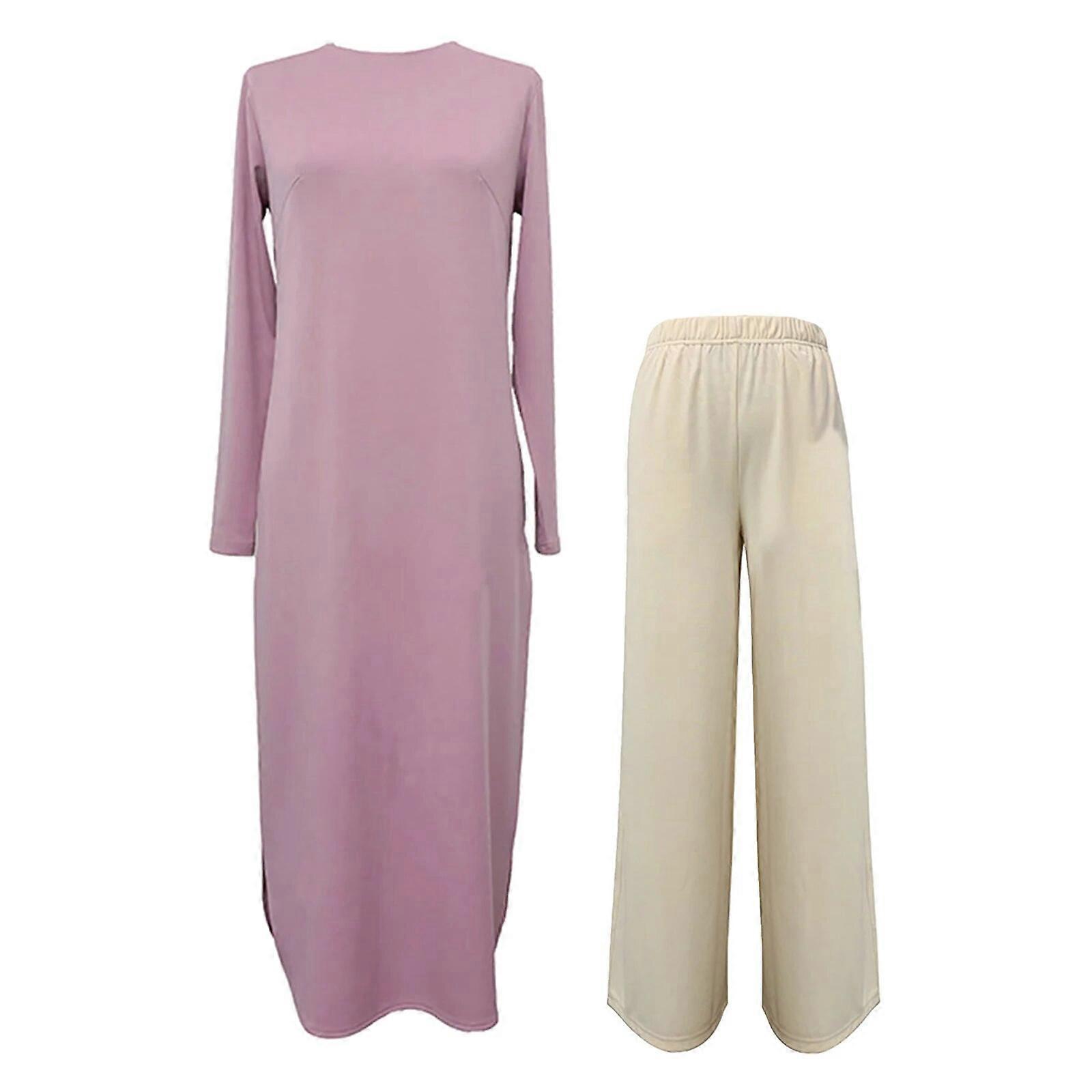 Muslim Sets Womens Abaya Two Piece Suits Long Sleeve Slit Robe Loose Pants Femme Islamic Clothing Middle East Costume