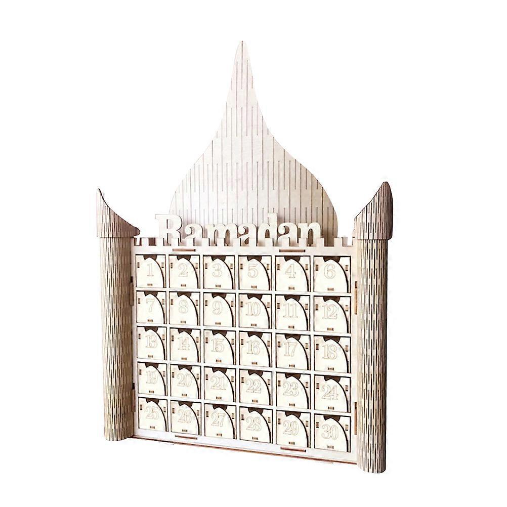 Islamic Festival Ornaments Rectangular Wooden Calendar Box Eid Mubarak Tabletop Decorations Muslim Islam Holiday Gift 20.1×14.2×3.9in 1Pack