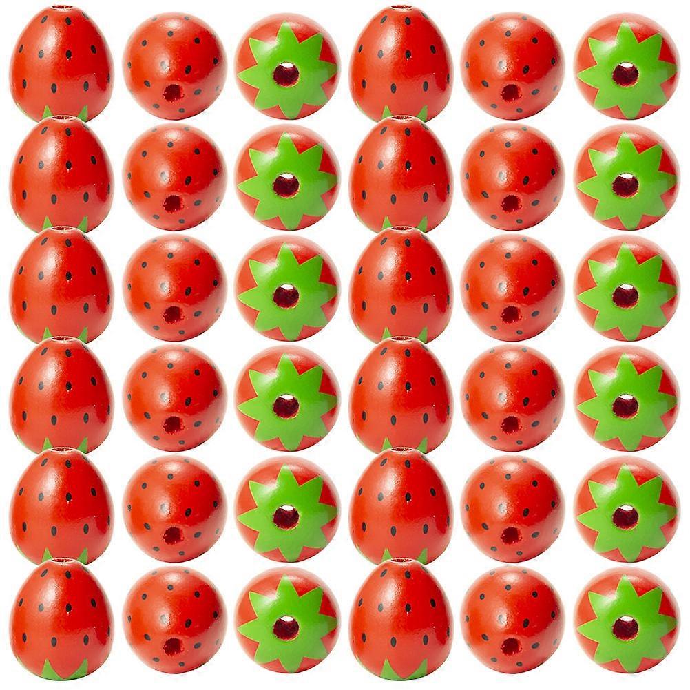 Strawberry Beads Wooden Fruit Beads for DIY Crafts 100Pcs