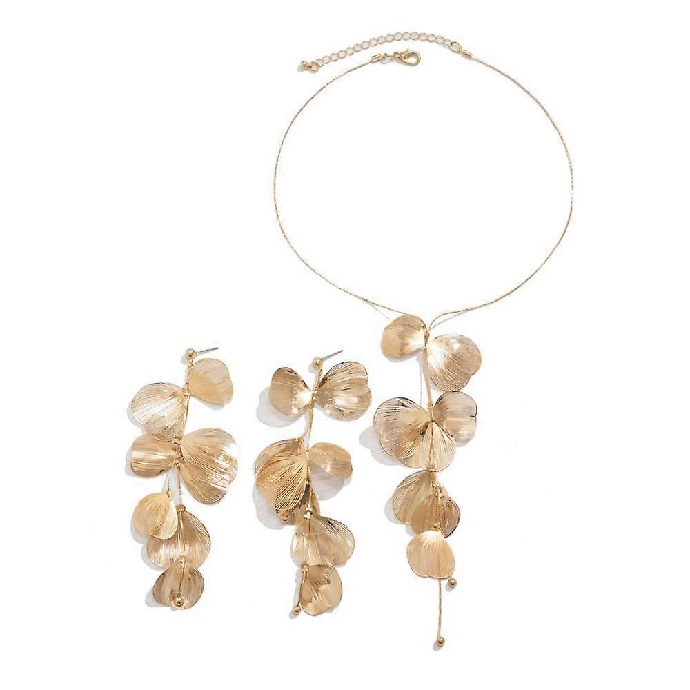 Ginkgo Leaf Tassel Necklace and Earrings Jewellery Set for Women in Gold, Elegant Party Accessories, Floral Design