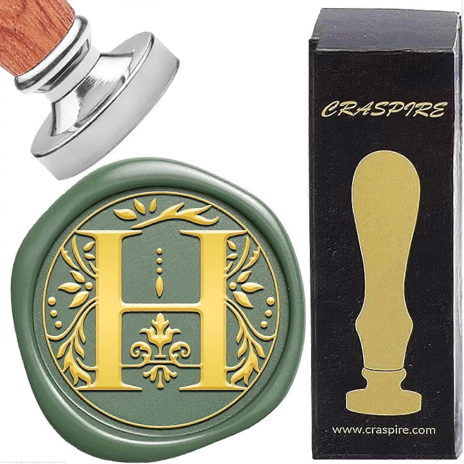 Initial Alphabets Wax Seal Stamps Letter H Vintage Removable Silver Brass Sealing Stamp Heads 25mm with Wooden Handle for Wedding Christmas Envelopes