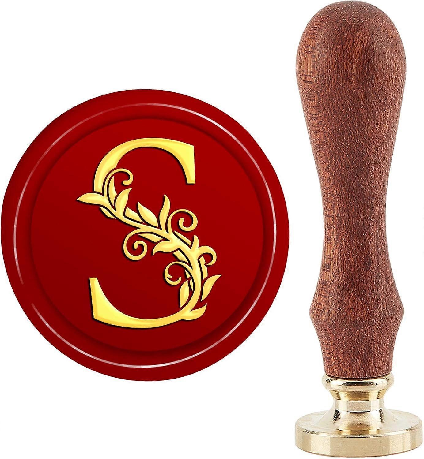 Initial Alphabet S Wax Seal Stamp Vintage Botanical Leaves Letter Sealing Wax Stamps 30mm Removable Brass Stamp Head with Wood Handle for Wedding Invi