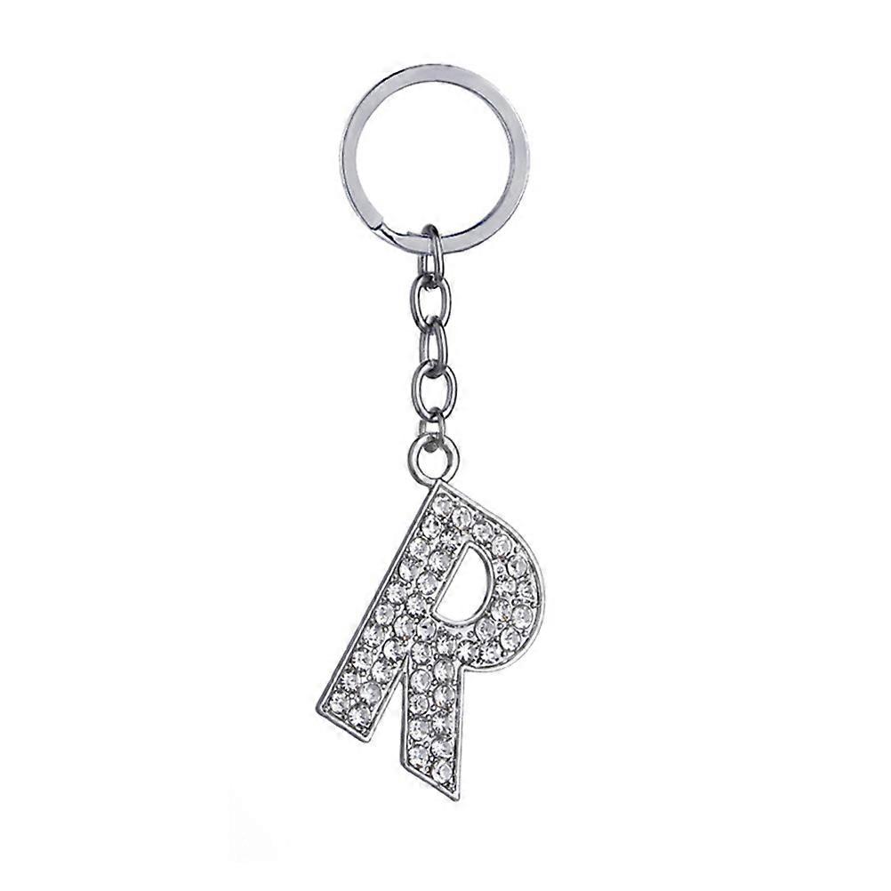 Initial Keychain Charm Simple Stylish Letter R Metal Rhinestones Key Ring For Birthday present 8 x 3 x 0.2cm 1Pcs