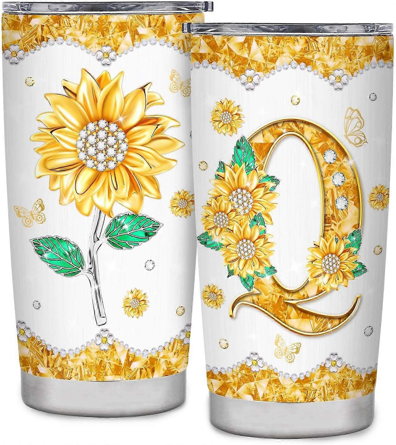 Initial Q Tumbler Mug Gifts,Monogrammed Sunflower Gifts for Women,Personalized Gifts,Personalized Tumbler Cup for Wedding Birthday Graduation Party,Un
