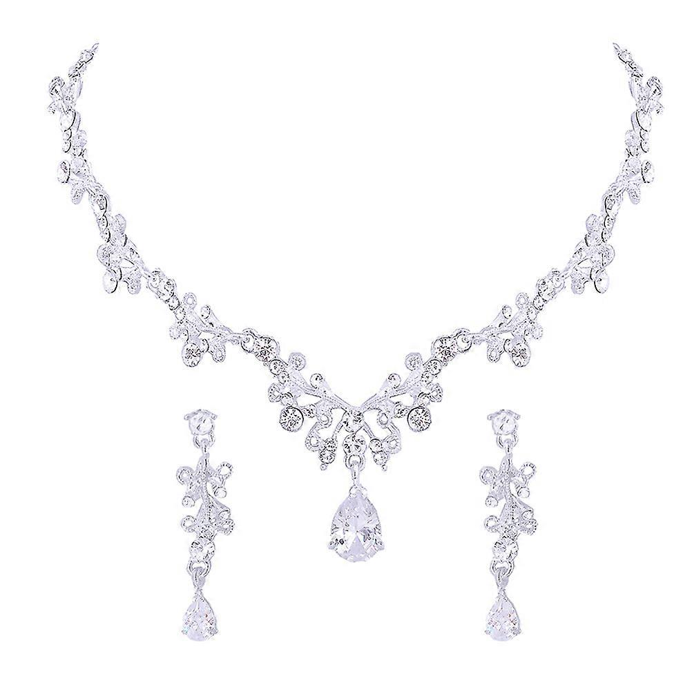 Earring and Necklace Set Wedding Accessories for Women 2Sets Silver Alloy