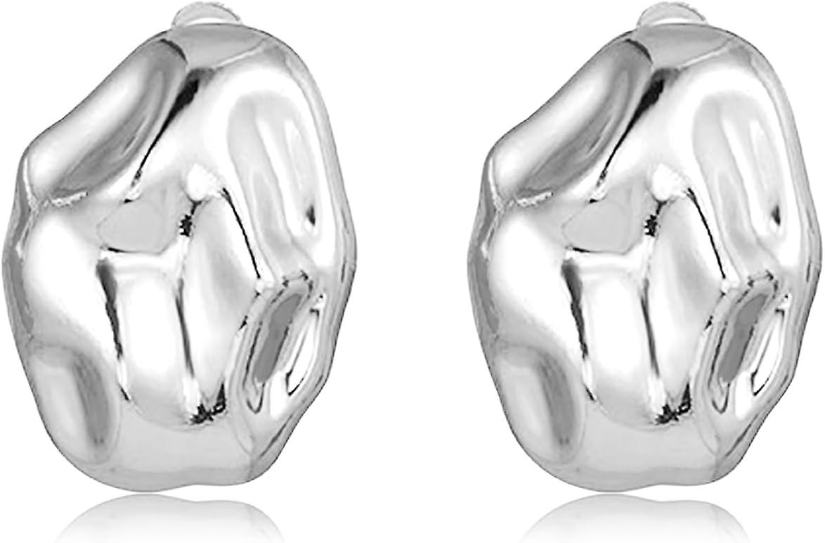 Irregular Recessed Round Clip On Earrings Women, Non Pierced Gold Plated Clip On Pressure Earrings f Gift for family/friendSilver