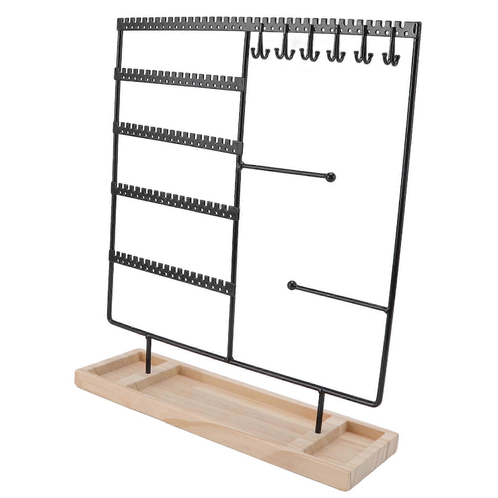 Earrings Hanger Iron 5 Tier 90 Holes 2 Metal Bar Earrings Rack with Wooden Base for Earrings Necklaces Bracelets Rings Black