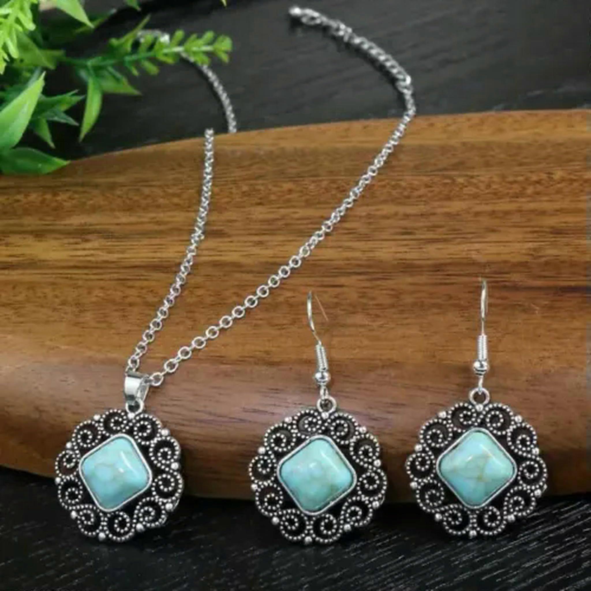 Earrings Plus Necklace Style Jewelry Set Inlaid Turquoise Match Daily Outfit