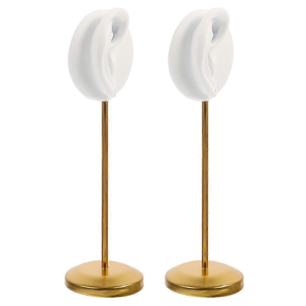 Ear Holder Stand Dual-Homes Ear Shape for Shopping Mall White Alloy Resin 2Pcs