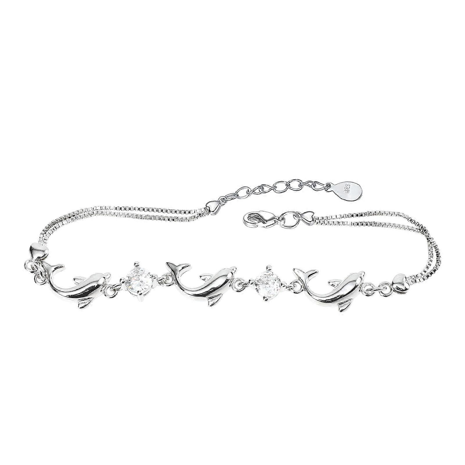 Dolphin Bracelet Crystal Bracelet for Women 2Pcs Silver Charm Jewelry Gift