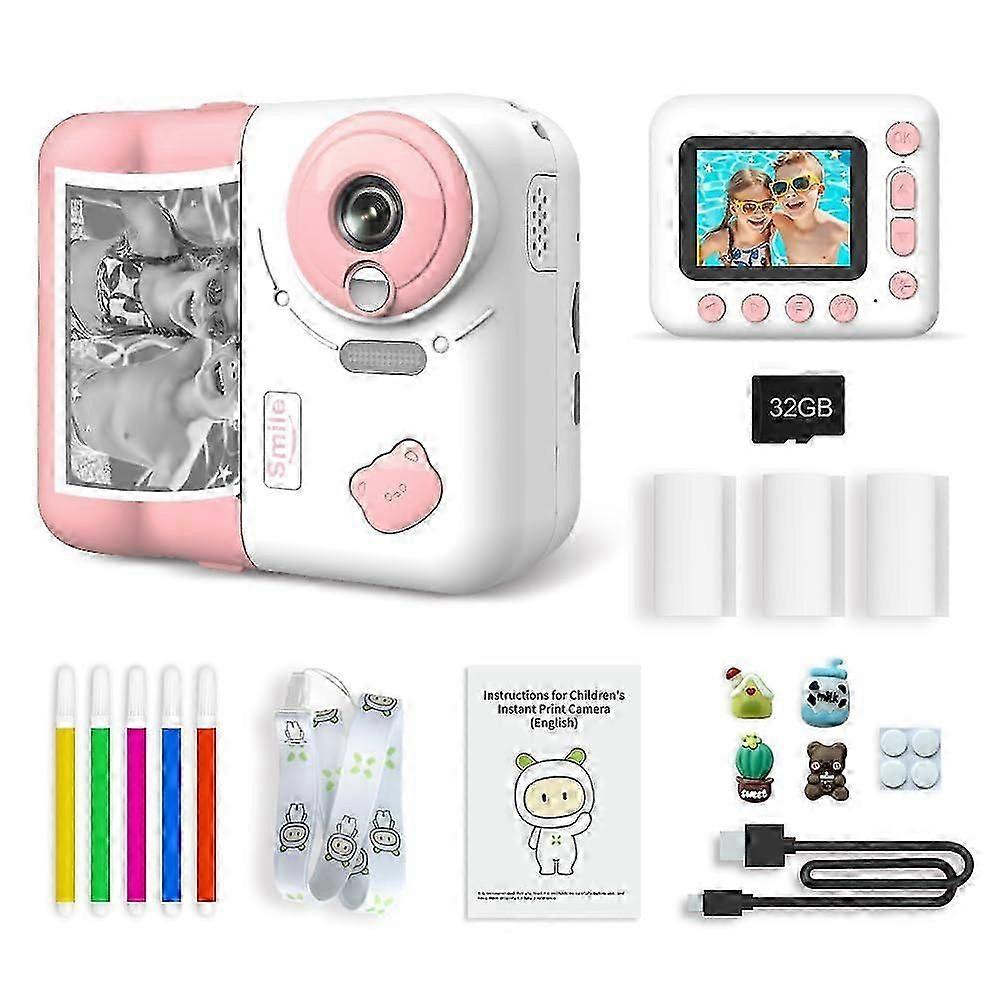 Instant Kids Photo Camera, 1080P 2.4' Instant Print Camera for Kids with Thermal Printing Paper, Ages 3-12, Pink