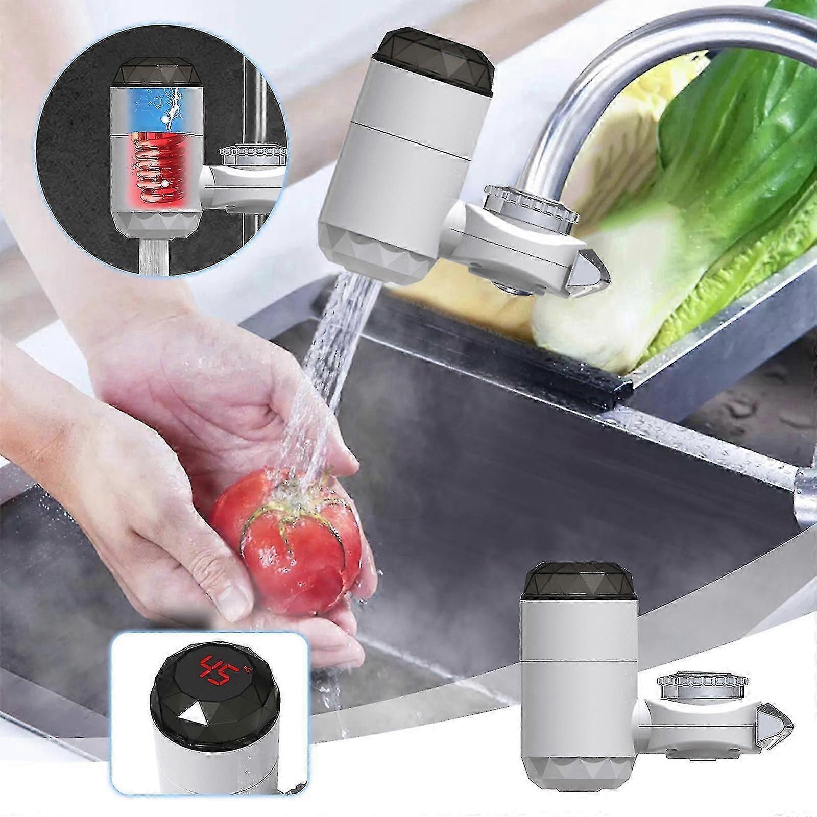 Instant Tankless Electric Hot Water Heater Faucet Kitchen Fast Heating Tap Water Faucet with LED Digital Display Feature: ADVANTAGES INSTANT WATER HEATER Instant tankless water heater with temperature sensor screen allows you to provide hot water to summer cottages, garages, and guest houses. The inlet way of the water heater is under the influent. DUAL USE HOT and COLD WATER with TEMPERATURE DISPLAY SCREEN - electric water heater serves both cold water and hot. The current temperature is shown on the display screen and is clear at a glance. TEMPERATURE MODE of WATER HEATER - The tankless water heater electric heats the flow passing through it to a +60 degrees Celsius temperature. It takes at least 3 seconds to heat the water. The heated water temperature is from 30 to 40 degrees in winter and from 30 to 60 degrees in summer. USED DIRECTLY and EASY to INSTALL - You no longer need to store heating water. Our instant tankless water heater heated the water when it turned on. It can be used directly on the faucet without special equipment. electric water heater is convenient and easy to install. Warranty & ServiceWe promise to bring the best quality bathroom faucet to our customer, if you are not satisfied with this bathroom faucet, do tell us, we will help you as much as possible. Your satisfaction is always our top priority. Product size: 15x13cm Package Included: 1 heating faucet, 1 bag of connector, 1 manual