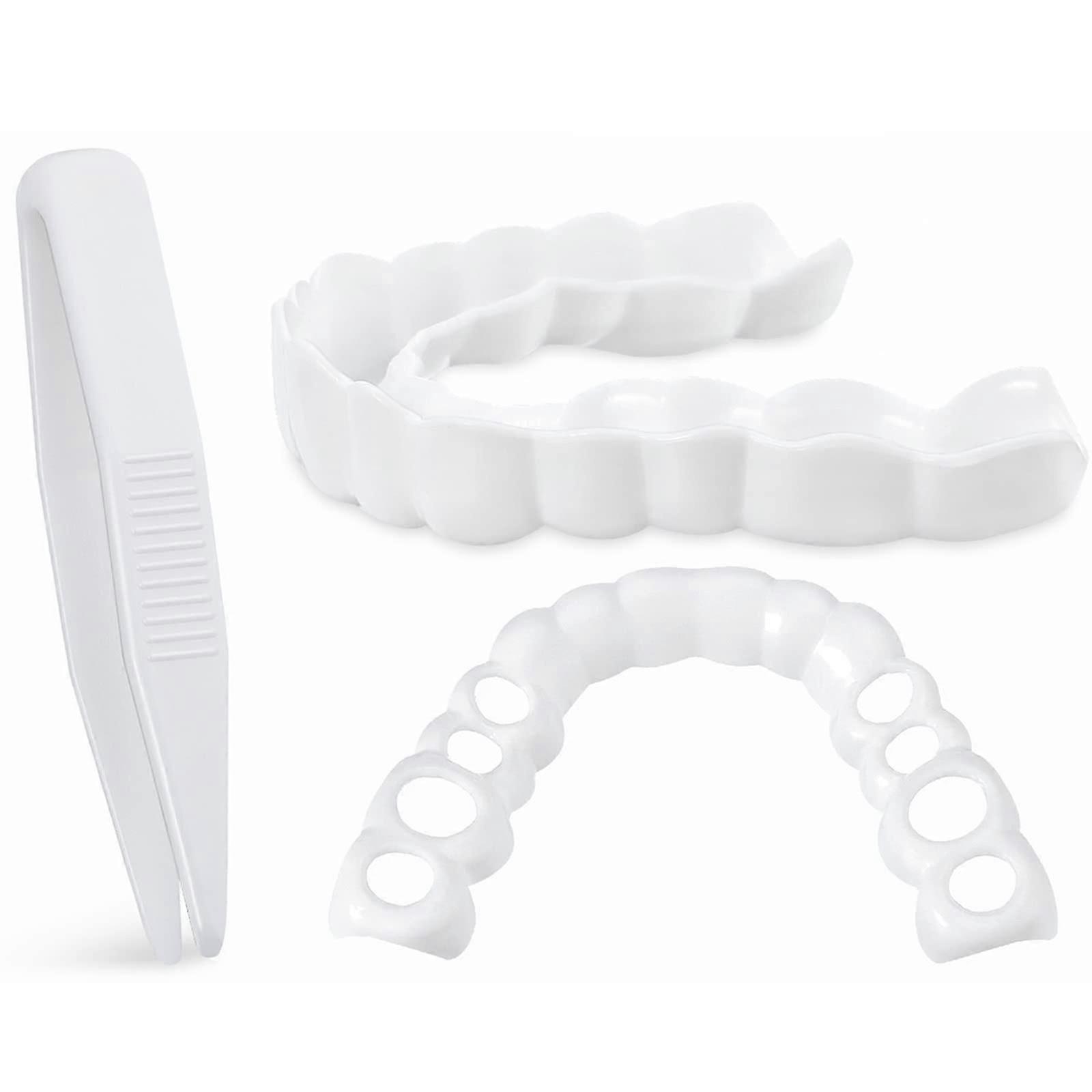 Instant Veneers Dentures Fake Teeth Smile Teeth Top Fake Teeth with Mini Tweezers for Men and Women