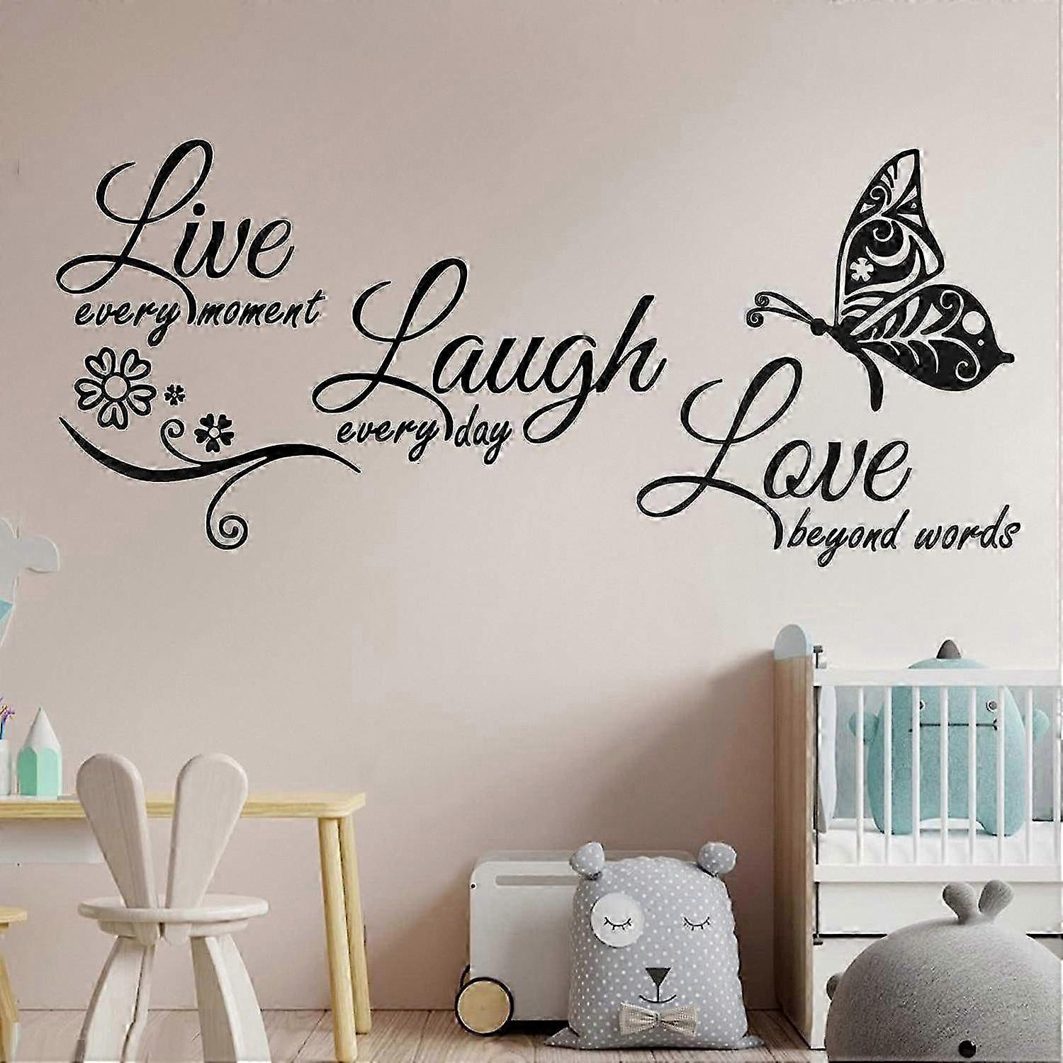 Package Include You will receive 4 sheets of motivation quotes wall decals, each sheet approximately sized 17.7 x 11.8 inches / 45 x 30 cm. The wall decor sticker features motivational phrases "Live Every Moment, Laugh Every Day, Love Beyond Words," along with large flying butterflies and small flowers. Brighten your room and bring passion to the wall with this inspirational wall sticker! Decal Received Size: 45x30cm x 4PCS / 17.7x11.8inch x 4PCS, Recommended Finish Size on the Wall: 70 x 140cm / 28x55inch. Please note that the scene graph shown is for reference purposes only and it is not the actual decal size. Premium Material Made of high-quality, non-toxic, waterproof and eco-friendly PVC material, it is not easy to damage or break, safe on walls, and also safe for children. Easy to Apply Just peel and stick to apply, perfect for DIY projects, no water, no paste, no mess. Removable with no sticky residue. Our wall art stickers come in a compact form, allowing you to adjust according to your spacing preferences or personal ideas. Wide Application Applies to any smooth and clean surfaces such as walls, glass, doors, window panes, furniture, closets, schools, classrooms, etc. Will not peel off over time.