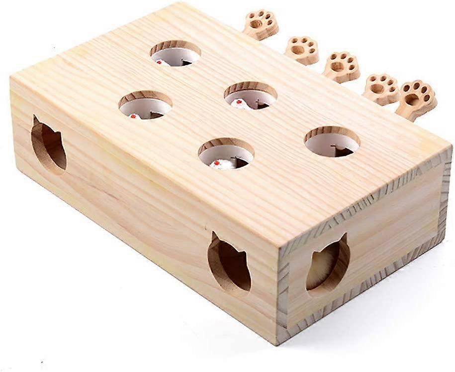 Interactive Cat Toy, Wooden Toy, Mole Mouse, Puzzle Box with Cute Cartoon Toys for Cat, Hunting, Game, Exercise, Scratching - 5 Holes,A