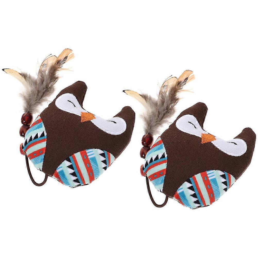 Interactive Pet Toy Cartoon Shaped Cat Plush Kitten Chew Indoor Play 2Pcs