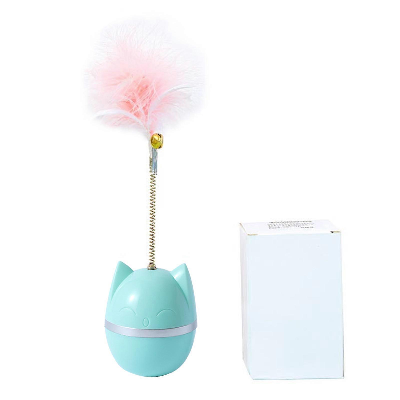 Interactive Cat Feather Toy Funny 360 Degree Rotation Cat Teaser Toys with Bell for Indoor Home Mint Green