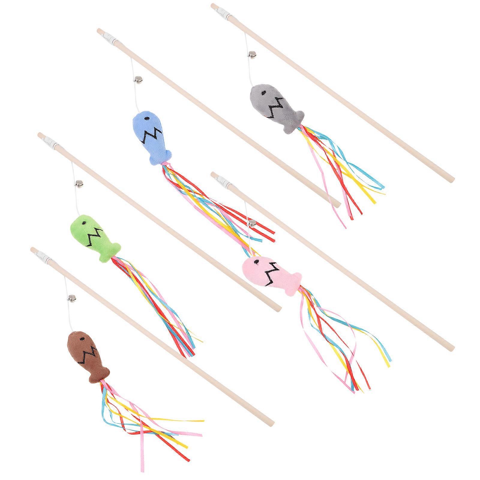Interactive Cat Teaser Wand Cat Teaser Stick Indoor Playtime Green Wood Training 5Set