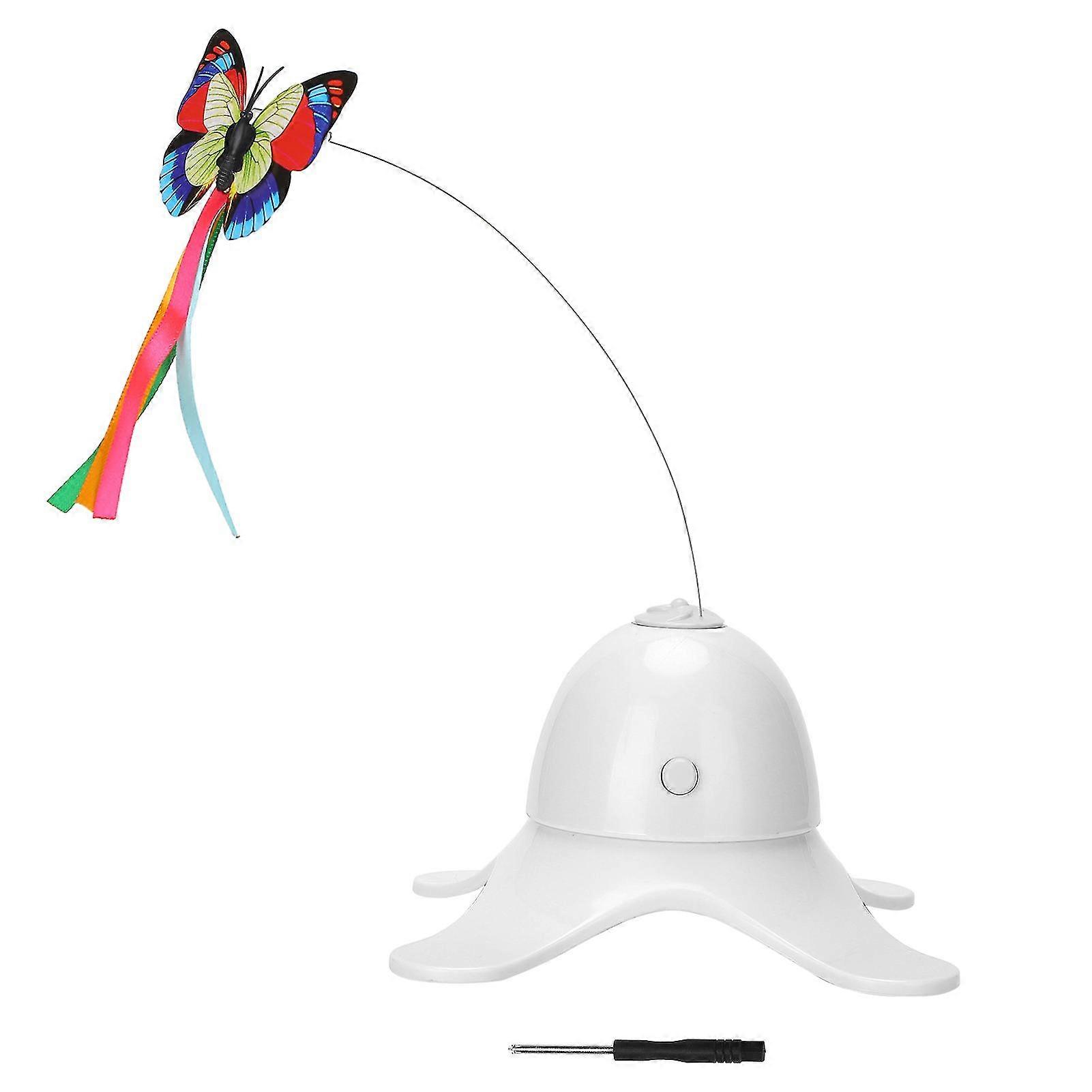 Interactive Electric Rotating Flashing Butterfly Cat Toy - White ABS Replaceable Simulation
