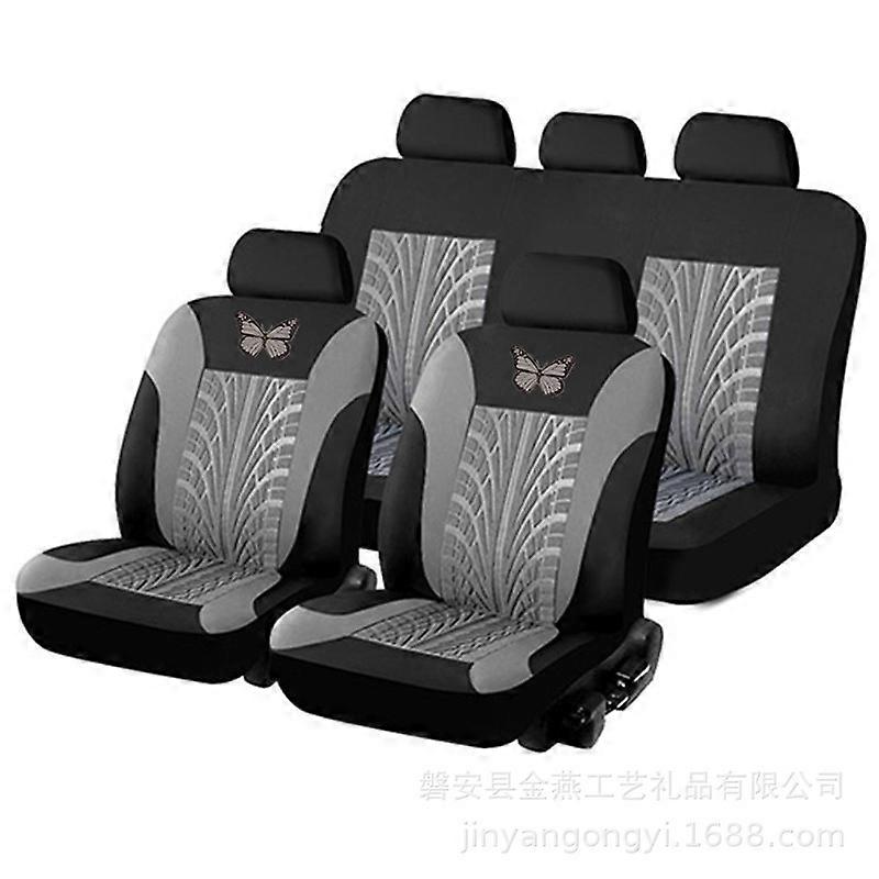 Indented Butterfly Car Seat Cover 9-Piece Set Black Gray Five Seats