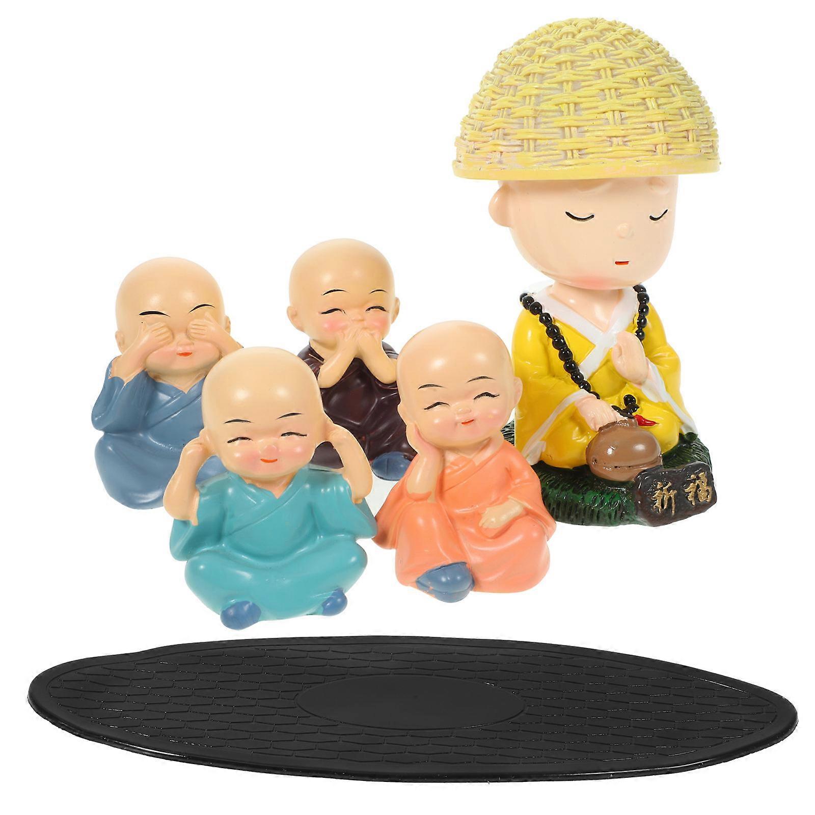 Interior Statue Decoration Solar Powered Small Resin Monk Car Interior Assorted Color 3.70X3.70X5.00cm 1 Set
