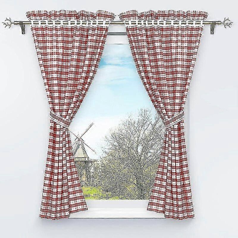 Set Of 2 Blackout Curtains Perforated With 2 Plaid Window Decorations For Interior Bedroom Red H/w 120/80cm