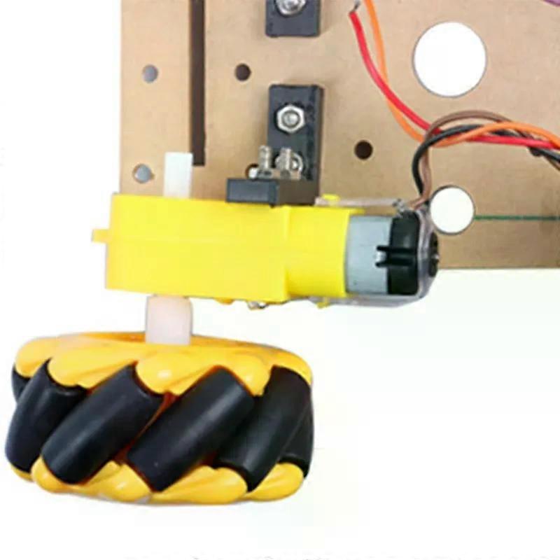 Intelligent Robot Car Kit Acrylic Chassis with 4WD Mecanum Wheels, Suitable for Programming Kit for Beginners DIY Robot Accessories; in the cleaners assembly 1. Intelligent tracking robot chassis with high degree of freedom, suitable for individuals; b from DIY, popular science education, growing interests, educational toys for kids and family kits; educational activities. 2. The mechanical structure is simple, and the universal chassis wheels are very flexible. It can move laterally without turning, adapting to difficult terrain. With these four new combinations, the coacute; The fully sporty functions are even more flexible and convenient. 3. No plug is very convenient, and the whole system is highly integrated. It can be used to measure distance and speed. Color: oacute; Yellow Material: Plastic Product Description Application: mother education, electronic projects RPM (with tires): 240 Tire diameter: 66mm Support; Reduction Ratio: 48:1 Current: 120mA Voltage: DC 6V Package Content: 1 Set of Assembled Electronic Auto Parts Only the above package content, other products are not included. Note: Light reflection and roacute; Different displays may cause the color of the item in the picture to be slightly different than it actually is. The allowed measurement error is +/- 1-3cm.