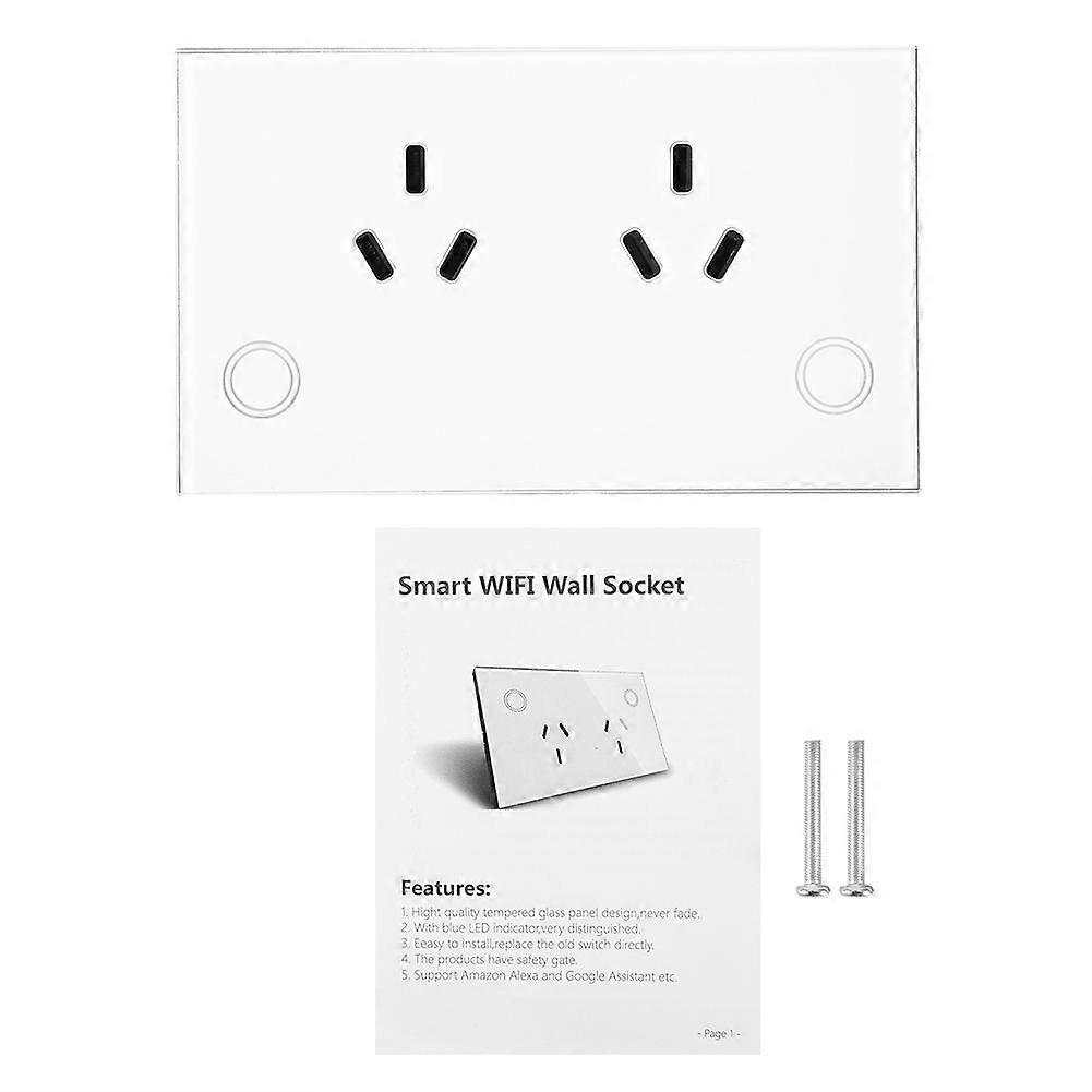 Features:Made of high-quality tempered glass it is durable wear-resistant and can be used for a long time.You can set up intelligent scenes at will such as: automatically turn on lights fans curtains.Support for Alexa/Google Home no need for host WIFI networking voice control.Support mobile phone timing status feedback and power statistics.Timing can be repeated multiple times local network disconnection can also be performed (continuous power) support mobile phone app voice control.You can automatically enjoy the smart life according to the settings of temperature and humidity weather conditions PM2.5 air quality sunrise and sunset etc.Specification:Condition: 100% Brand NewMaterial: Tempered Glass + PC Flame RetardantInstallation Hole Distance: About 85mmWireless Type: 2.4G 802.11b/G/NLoad Current: 10AColor: WhiteGlass Thickness: 2mmService Life: 100000 TimesAmbient Humidity: 10%~90% (No Condensation)Working Temperature: -20 C ~ 50 CWeight: Approx. 240g / 8.5ozProduct Size: Approx. 12x7.2x3.5cm / 4.7x2.8x1.4in Package List:1 x Wall Socket1 x Instruction Manual2 x ScrewsNote:1.Please allow 0-1 inch error due to manual measurement. Thanks for your understanding.2.Monitors are not calibrated same item color displayed in photos may be showing slightly different from the real object. Please take the real one as standard.
