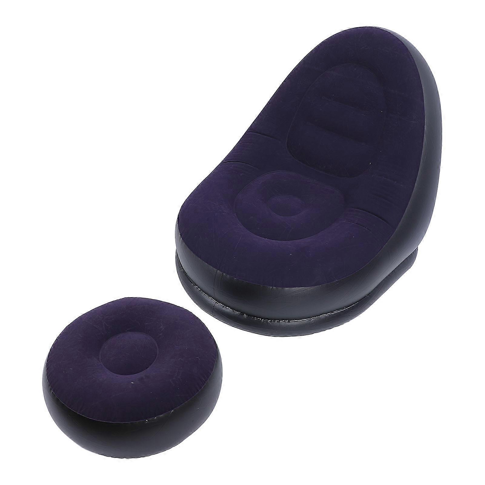 Inflatable Sofa Chair Stylish Simple Soft Flocking Blow Up Lounger Chair with Footstool for Living Room Outdoor Travel Camping Picnic Dark Blue
