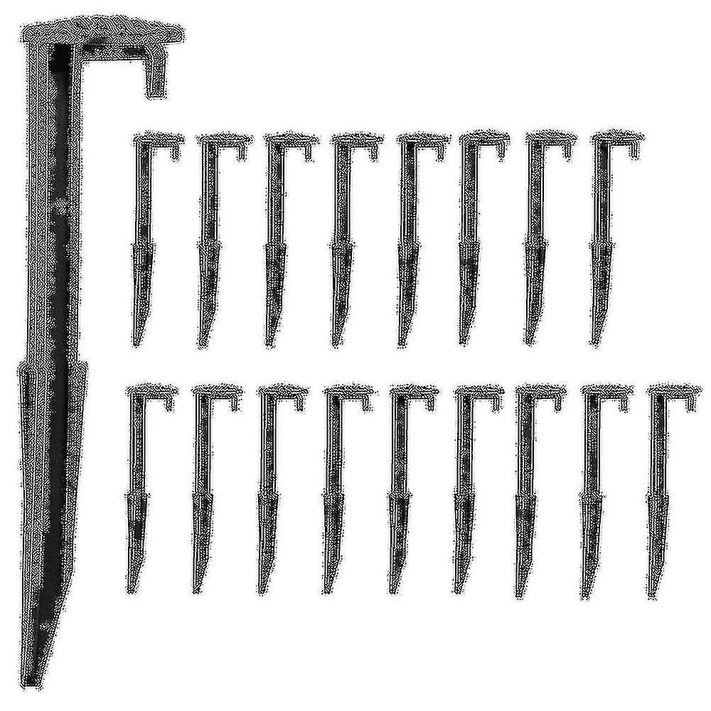 They are black garden stakes, which are enough to meet your daily use and replacement needs. You can use them by yourself or share them with friends for your convenience.Size information: The size of these yard black tent piles is about 145 mm / 5.7 inches, and the size is suitable for most floors and walls. The top of these yard piles has a flat hook design for fixing tents and other items with ropesWaterproof performance: These gardening floor tent nails are made of plastic materials, which are waterproof and weather resistant, can resist rain and sunlight, and are not easy to rust. This material is relatively hard, not easy to deform and break. Note: When the soil on the lawn is thick and hard, you need to hit it slowly with a hammer, otherwise it will break easily. As long as you use it correctly, you can use it multiple times.Multiple uses: This gardening nail can be used in various occasions, such as garden lights, Halloween pumpkin lights and street lights; you can fix them on some inflatable decorations on the porch and driveway to create a warm atmosphere for guests, friends and familyEasy installation: This tent pile is easy to install. You can press the pile to the position you want, tilt it slightly to the object you want to fasten, pull up from the top of the nail, and tighten it as needed; in addition, you can press the nail Into the ground to make it more stable.size:14.5x3.5cmMaterial:plasticcolour:BlackPackage Contents:18 x Plastic StakesOnly the above package content, other products are not included.Note: Light reflection and different displays may cause the color of the item in the picture a little different from the real thing. The measurement allowed error is +/- 1-3cm.