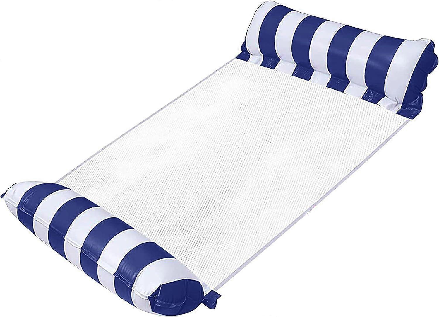 Inflatable Pool Float Hammock Floatie Travel Raft Lounge Chair Exercise Saddle Drifter (Navy, Single (130 * 70cm))