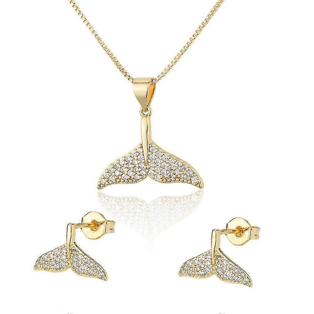 Inlaid Zirconium Fishtail Set Copper Plated Gold Eardrops Ear Studs Earrings Necklace For Daily Use