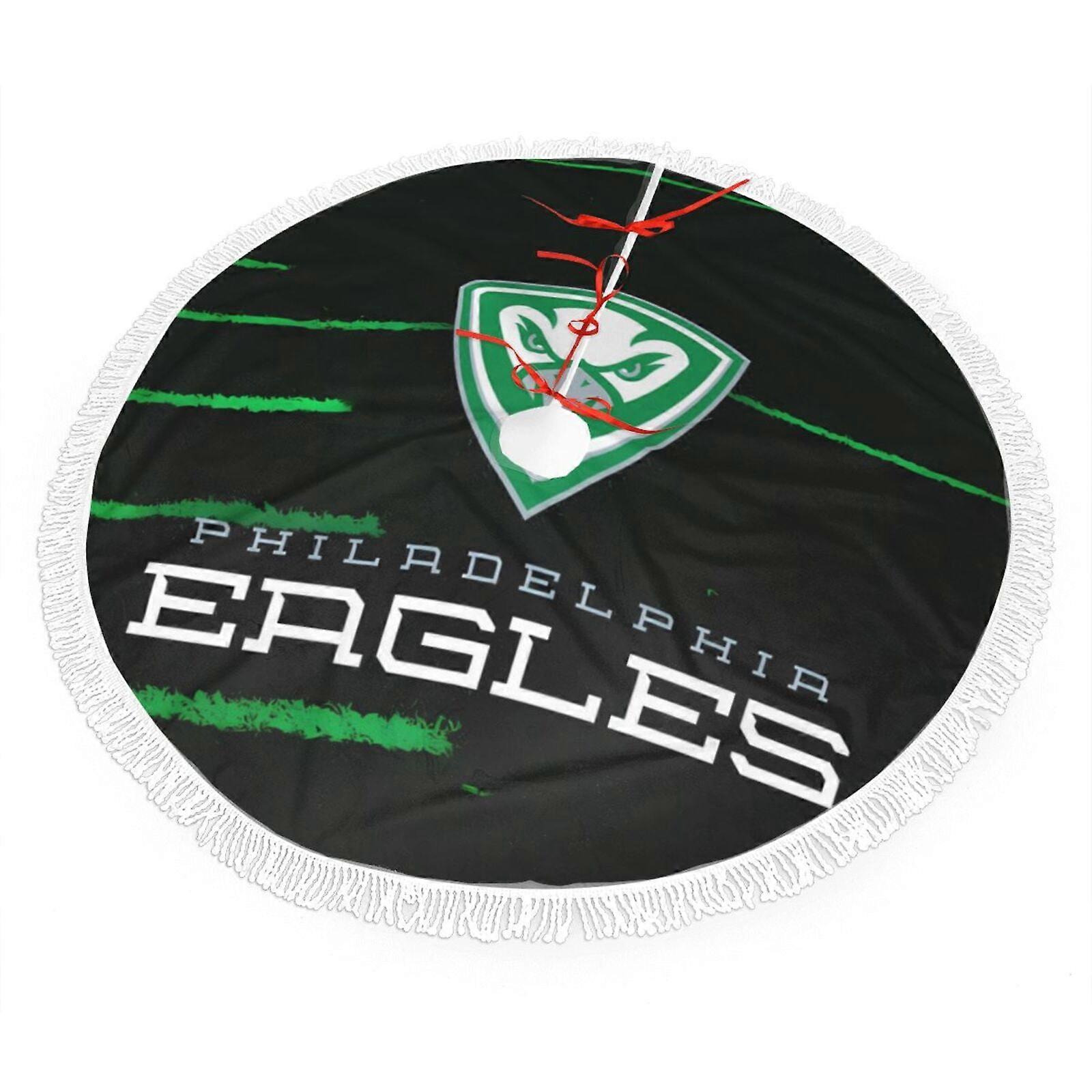 Eagles Christmas Fringe Plush Tree Skirt, compatible with NFL decor, bright colors, easy install, great gift for fans (30" 36" 48")
