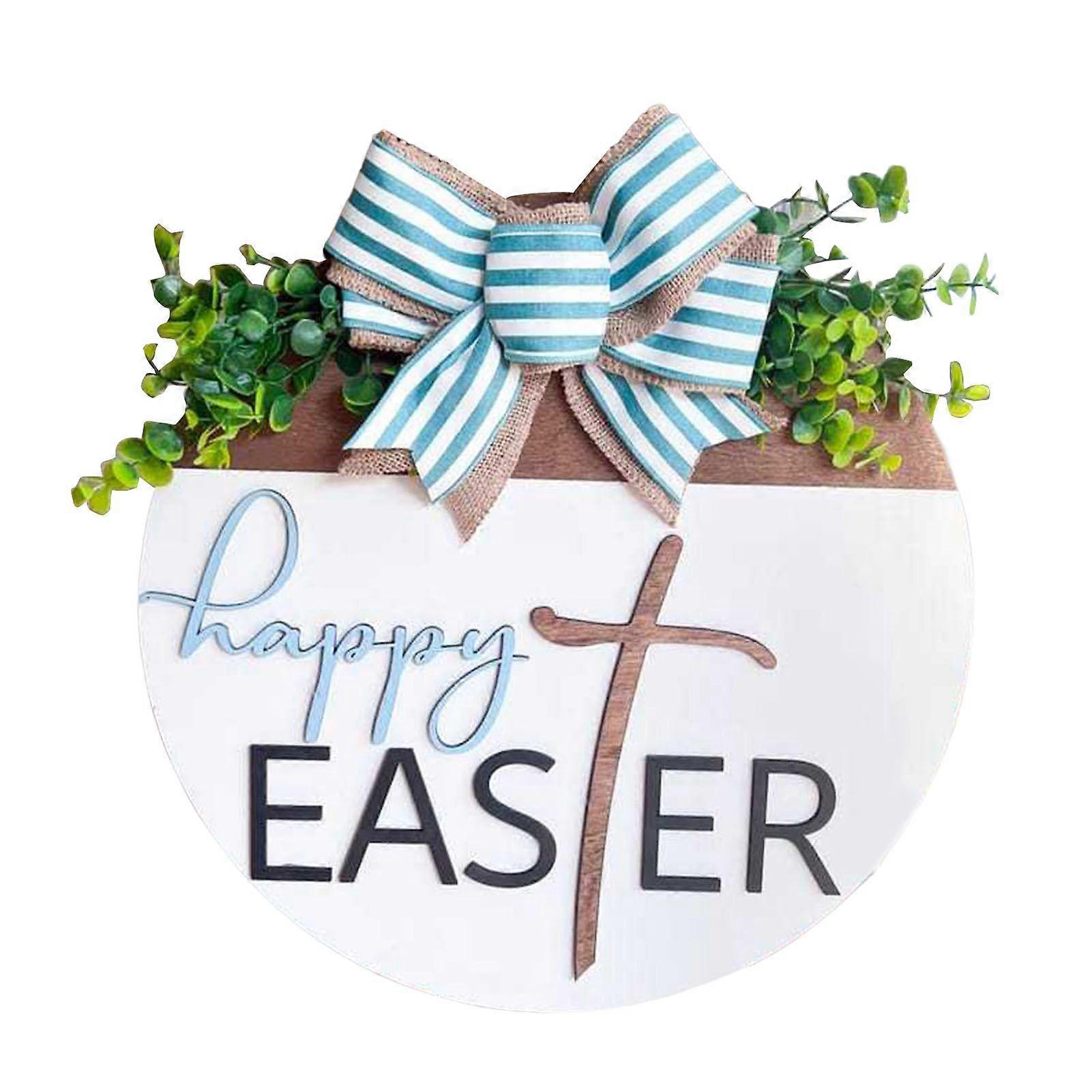 Easter Welcome Sign Wooden Door Hanging Sign Rustic Easter Front Door Decor Sign with Bow Wreath for Porch Outdoor Entryway